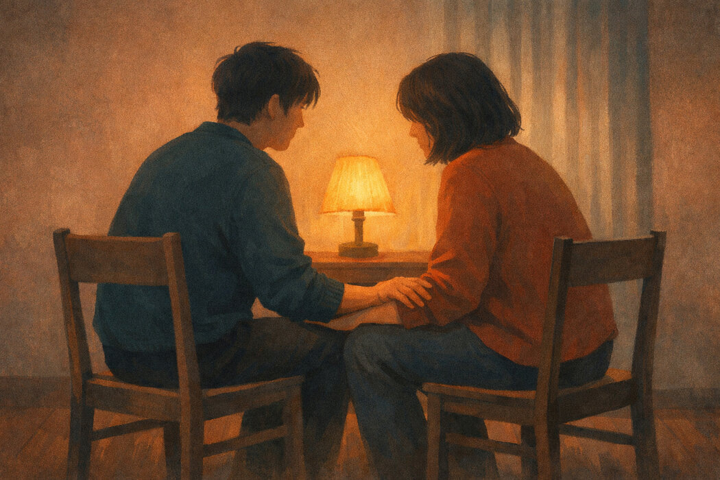 Первоначально это может показаться невыносимо трудным. Люди отвлекаются, начинают смеяться от неловкости или проявляют другие эмоции. Если удается выдержать несколько минут молчания, следующим шагом может стать простое прикосновение: рука на плече или встреча ладоней. Затем можно произнести простую фразу: «Я здесь» или «Рад, что ты рядом» — это напоминает о том, что между вами все еще есть связь.