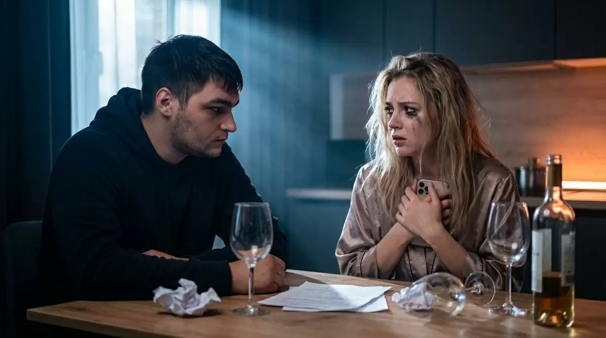 Он молча протянул ей свой телефон, где был скриншот её переписки с мужчиной, в котором явно говорилось о более чем дружбе. Этот момент толкнул их отношения к неизбежному окончанию.