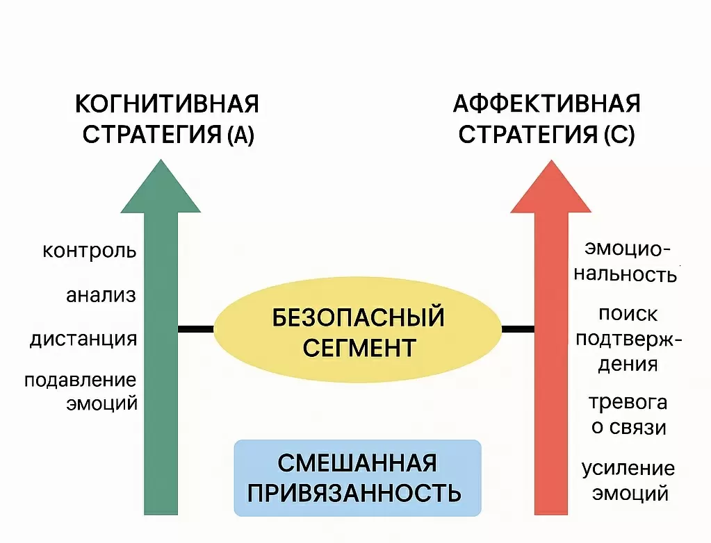Динамическая модель созревания привязанности (DMM) выделяет важные защитные стратегии, среди которых значится вектор стратегии А, ориентированный на подстройку. В основе этого вектора лежит преобладание логики над эмоциями. Дети, следуя этой стратегии, подавляют свои чувства, развивая способности к анализу и контролю, а также стремятся восстановить контакт со значимыми взрослыми.