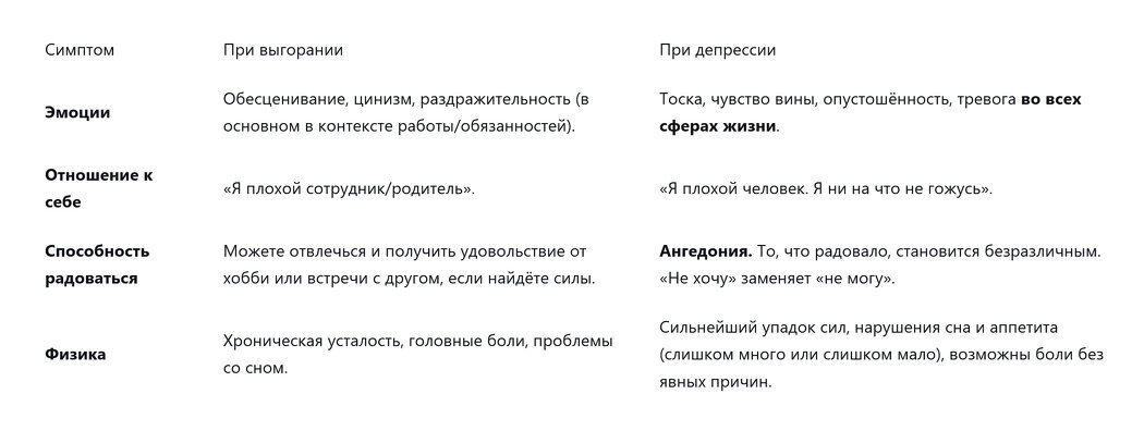 Оба состояния связаны с эмоциональным и физическим истощением, но различия между ними весьма значительны: